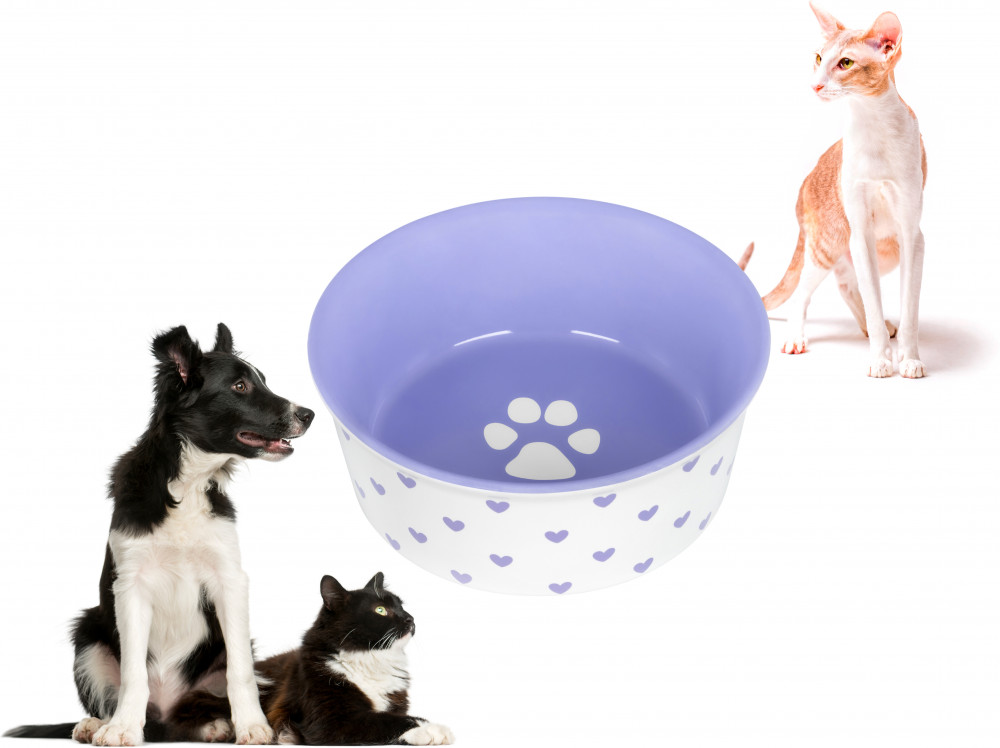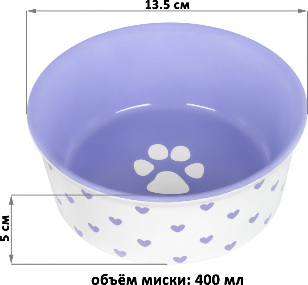 Отзывы «Миска для домашних питомцев «Лапка на сиреневом и сердечки»»