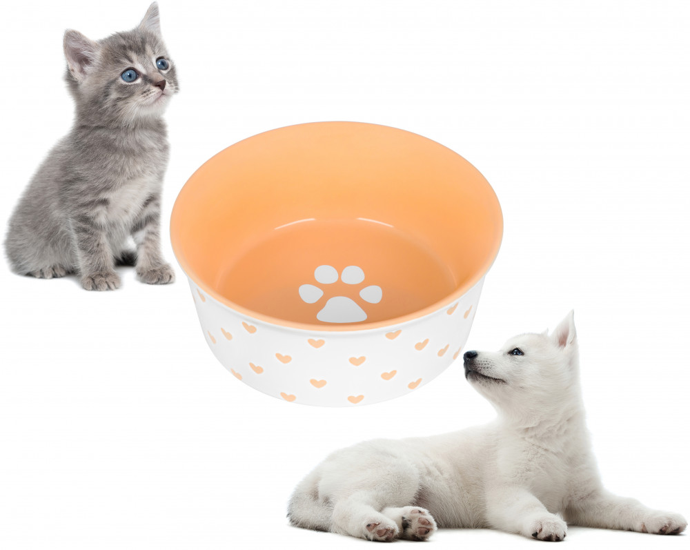 Elan Gallery Миска для домашних питомцев «Лапка на бежевом и сердечки»