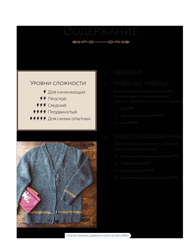 Магия вязания. Вяжем спицами одежду, игрушки и аксессуары из мира Гарри ПоттераВ данный момент этот товар отсутствует в продаже. Возможно, у нас найдется аналогичный или похожий товар здесь. Представляем первую официальную книгу по вязанию изделий из мира Гарри Поттера. В этом сборнике вы найдете 27 красивых проектов, которые порадуют поклонников культовой саги и станут источником вдохновения для многих мастериц. |
