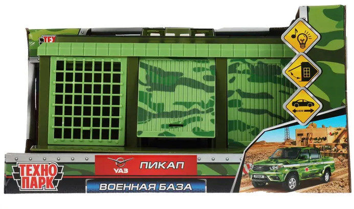 💳 Оплатить за товар можно при получении 🇰🇿 Есть бесплатная доставка по Казахстану от 1 дня 🎁 Копите бонусы с каждой покупки Игровой набор «Военная база» ТМ «Технопарк» обязательно понравится маленькому спасателю. Двери гаража опускаются и поднимаются — инерционный механизм, поставьте машинку с машиной UAZ Pickup на ровную поверхность, потяните назад и отпустите — она тут же поедет вперёд. Этот набор с реалистичной, детально проработанной машинкой и гаражом непременно увлечёт вашего ребёнка и вдохновит на множество новых игровых сюжетов. Кроме того, эта игрушка познакомит малыша с видами военной техники. Игра с набором ТМ «Технопарк» развивает воображение, координацию движений, внимание, ловкость, моторику. |