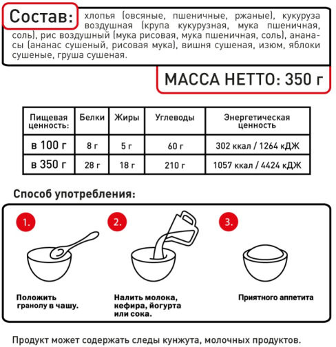 Купила для детей, им нравится залить молоком и через 5 мин есть, удобно быстро и не нужно варить, вкусно. Понравились мюсли и мне и детям, рекомендую всем.