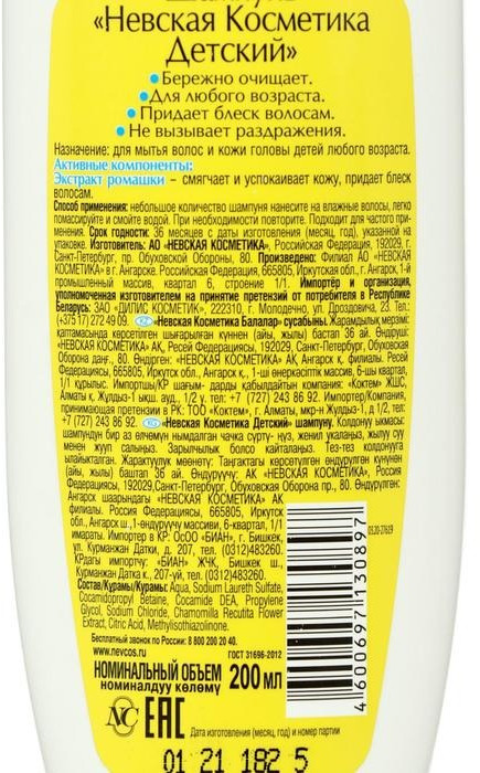 Невская Косметика Шампунь детский с ромашкой-25% +27
