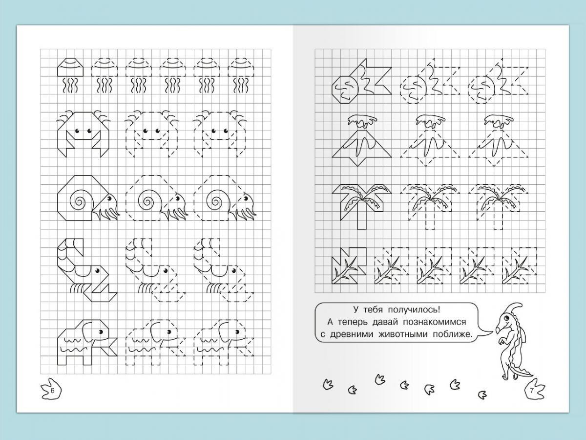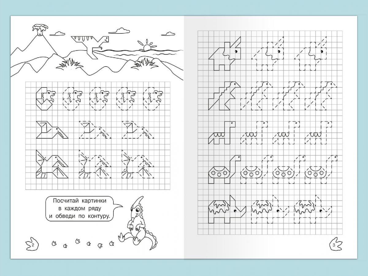 Графические диктанты. Рисуем по клеточкам «Динозавры»+4