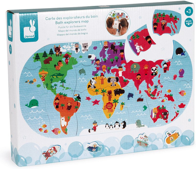 Janod Пазл для купания «Карта мира»+90