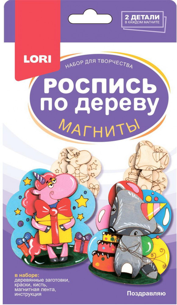 Набор предназначен для изготовления магнита, путем раскрашивания деревянной заготовки акриловыми красками. Отличный подарок.