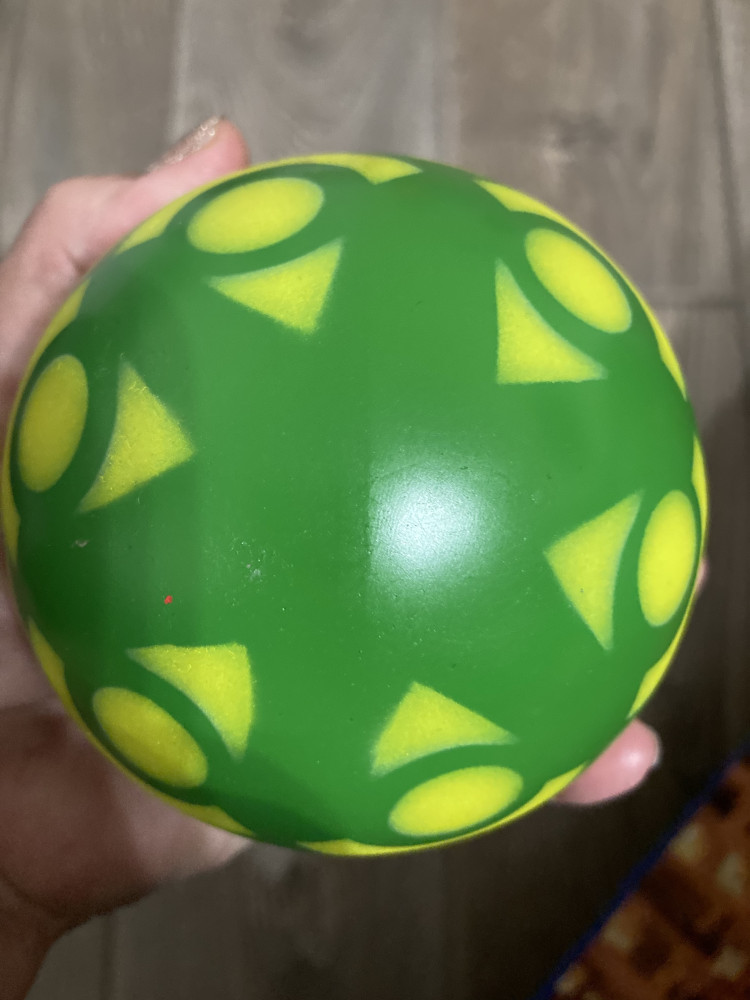 Мячик маленький, как раз для малыша. Внуку понравился. Практически помещается в ладошку. Пришёл в надутом состоянии.