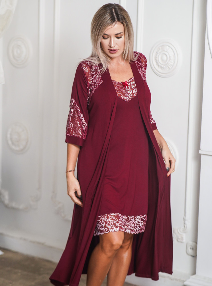 Прочитав отзывы,халат взяла 50 размер,ночнушку 48.Большемерит.Лямки падают с плеч,в бёдрах подвисает,запахнуться подолом халата можно дважды.Надо было 46 размер брать.Хотя беру вещи белорусские 48 размер.Комплект на высокорослых.