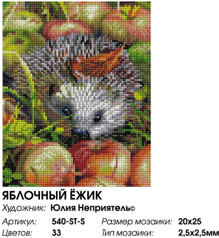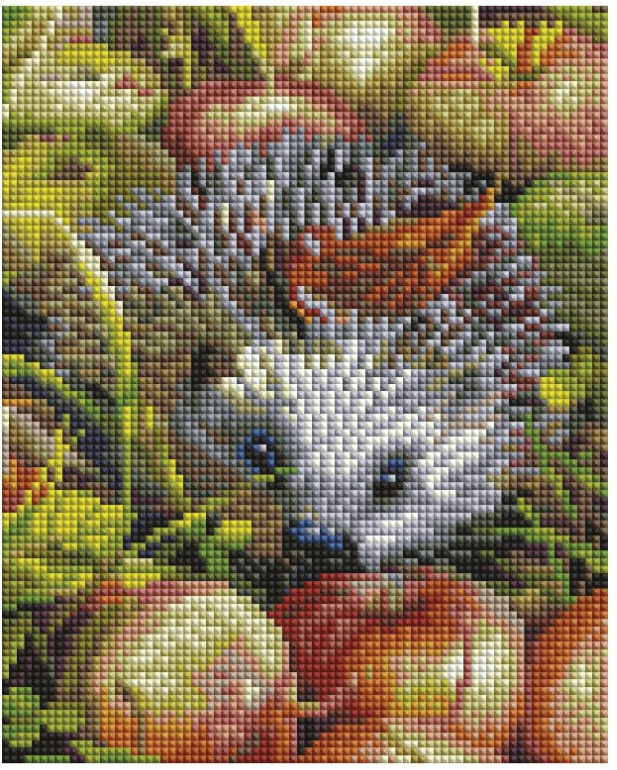 Создание картин по технике алмазной мозаики — инновационное творческое решение. Отличительная особенность этого вида хобби в достижении сияющей и переливающейся на свету работы. С помощью набора из серии Алмазная мозаика от компании «Белоснежка» вы сможете собрать маленького ёжика, который, путаясь в листочках, тихонько пробирается по тропинке с яблоками.