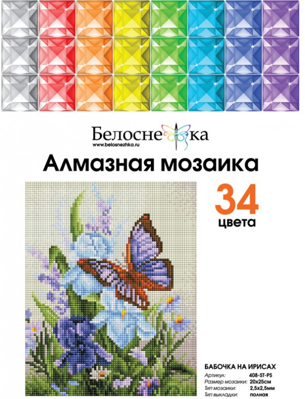 Белоснежка Мозаика алмазная «Бабочка на ирисах»-25% +122