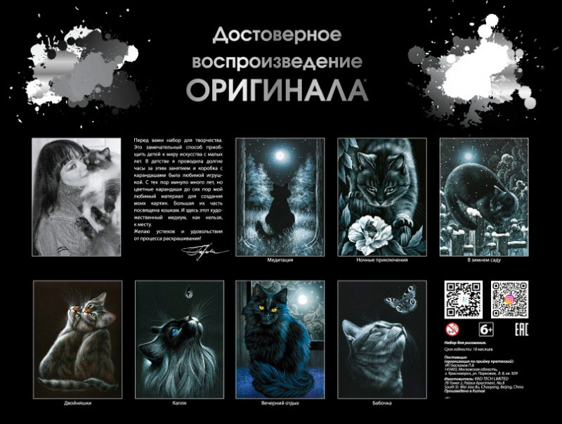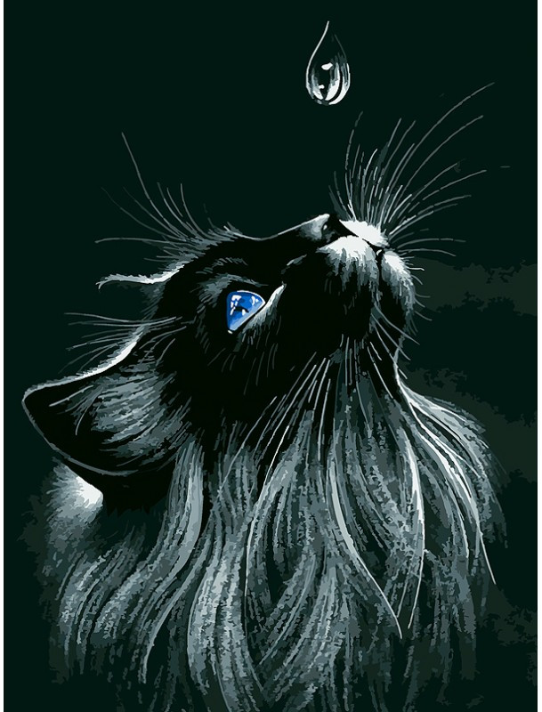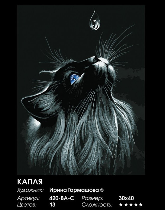 Серия наборов для творчества «Кошки» от Ирины Гармашовой в стильной черной упаковке! Любите кошек, восхищайтесь кошками, рисуйте кошек вместе с «Белоснежкой»! Представьте себе один день из жизни нашего пушистого друга и создайте маленькую историю на холсте. У нашего героя настало время заняться интересным делом — понаблюдать за капельками.