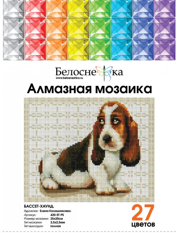 Белоснежка Мозаика алмазная «Бассет-хаунд»-25% +107