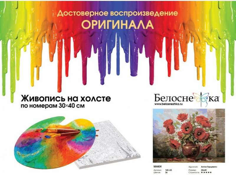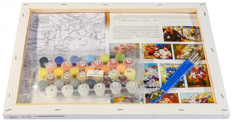 Внимание! Краски могут подсохнуть или быть слишком густыми — это не является браком, в этом случае добавьте небольшое количество воды и хорошо размешайте краску. Рекомендуем раскрашивать картину без длительных перерывов, чтобы краска в баночках не высыхала. |