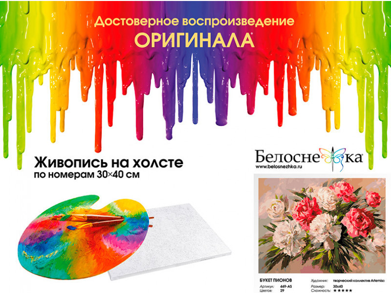 Белоснежка Картина по номерам «Букет пионов»В данный момент этот товар отсутствует в продаже. Возможно, у нас найдется аналогичный или похожий товар здесь. Серия: Цветы Мы любим цветы за их красоту и свежесть, потому что они способны приносить радость, а может они нам просто нравятся, на них приятно смотреть, а еще лучше их нарисовать. Набор для рисования по номерам от «Белоснежки» — это очаровательный сюжет в котором на первый план выходят цветы. |