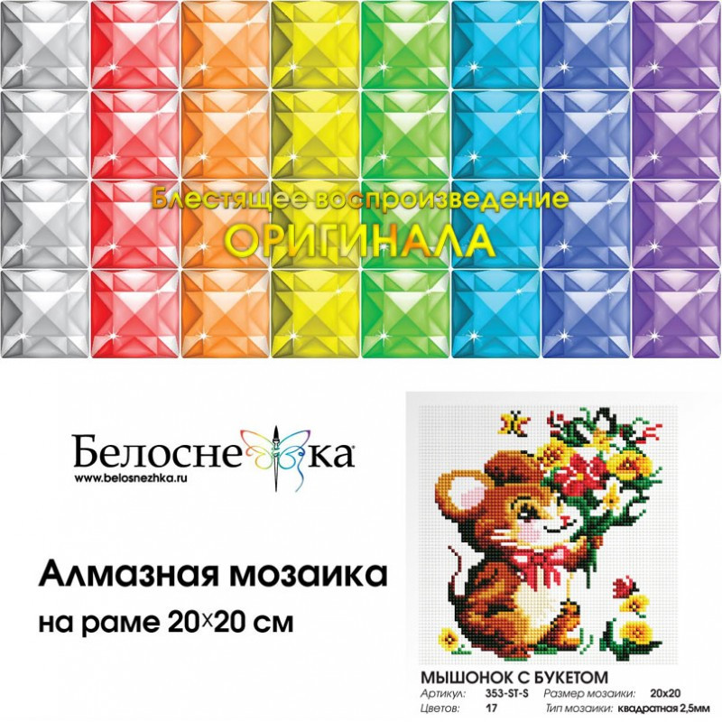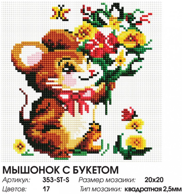 Белоснежка Мозаика алмазная «Мышонок с букетом»-25% +125