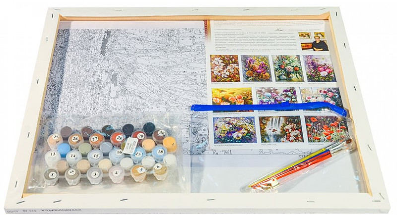 Техника раскрашивания по номерам дает возможность легко рисовать даже сложные сюжеты. Наборы для раскрашивания комплектуются акриловыми красками, которые не содержат растворителей, вредных компонентов и абсолютно безвредны. До момента высыхания краски смываются водой. Акриловые краски после высыхания образуют эластичную несмываемую пленку, практически не выгорают на солнечном свете и становятся устойчивыми к механическим воздействиям. В наших наборах для рисования краски наносятся без смешивания цветов. Акриловые краски, расфасованы в маленькие баночки, на крышках которых приклеен номер краски.