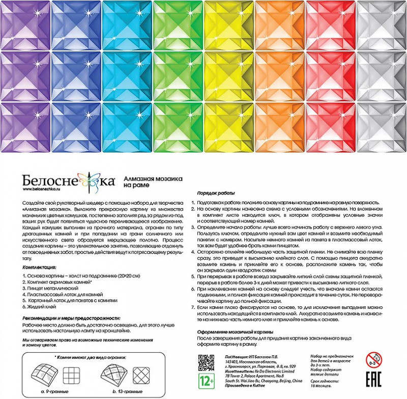 💳 Оплатить за товар можно при получении 🇰🇿 Есть бесплатная доставка по Казахстану 🎁 Копите бонусы с каждой покупки Создайте свой рукотворный шедевр с помощью набора для творчества «Алмазная мозаика». Выложите прекрасную картину из множества маленьких цветных камушков, постепенно заполняя ряд за рядом будет появляться чудесное переливающееся изображение. Каждый камушек выполнен из прочного материала, огранен по типу драгоценных камней и при попадании на грани солнечного или искусственного света образуется мерцающие полотно. Процесс создания картины — это увлекательное занятие, немного тренировки, и вы станете настоящим мастером. |
