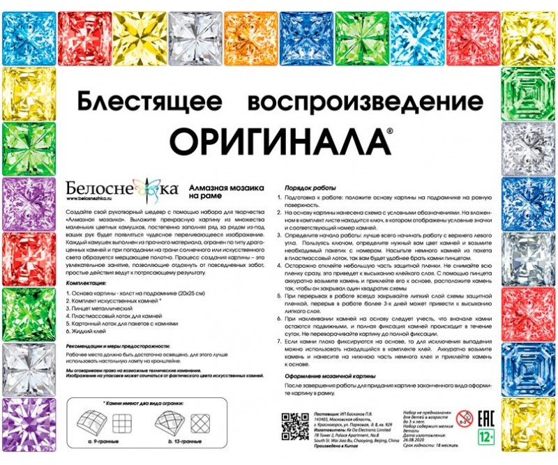 💳 Оплатить за товар можно при получении 🇰🇿 Есть бесплатная доставка по Казахстану от 1 дня 🎁 Копите бонусы с каждой покупки Создайте свой рукотворный шедевр с помощью набора для творчества «Алмазная мозаика». Выложите прекрасную картину из множества маленьких цветных камушков, постепенно заполняя ряд за рядом будет появляться чудесное переливающееся изображение. Каждый камушек выполнен из прочного материала, огранен по типу драгоценных камней и при попадании на грани солнечного или искусственного света образуется мерцающие полотно. Процесс создания картины — это увлекательное занятие, немного тренировки, и вы станете настоящим мастером. |