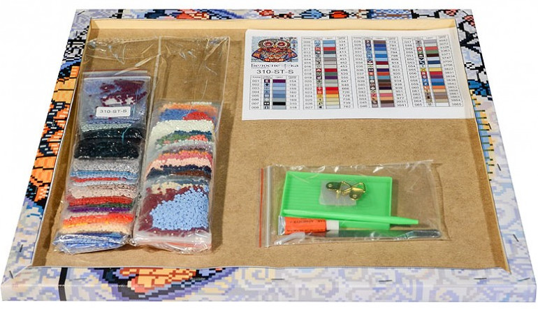 • основа картины — холст с нанесенной схемой на подрамнике;