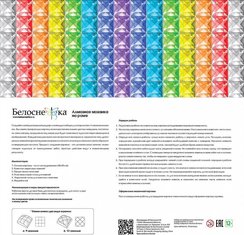 • комплект квадратных камней с огранкой 2,5×2,5 мм;