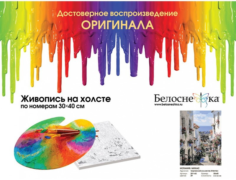 Белоснежка Картина по номерам «Испания Михас»красивая картина свежие краски подарочный вариант В данный момент этот товар отсутствует в продаже. Возможно, у нас найдется аналогичный или похожий товар здесь. Серия: Пейзаж В этом наборе вы найдете холст на подрамнике, на который нанесены контуры рисунка, а также числа, указывающие на цвет, которым должна быть закрашена та или иная часть картины. Наносите краску нужного цвета на холст при помощи кисти, сверяясь с контрольной схемой. Это спокойное, неторопливое занятие подойдет и ребенку, и взрослому, к тому же оно помогает развить цветовосприятие, аккуратность и художественный вкус. |