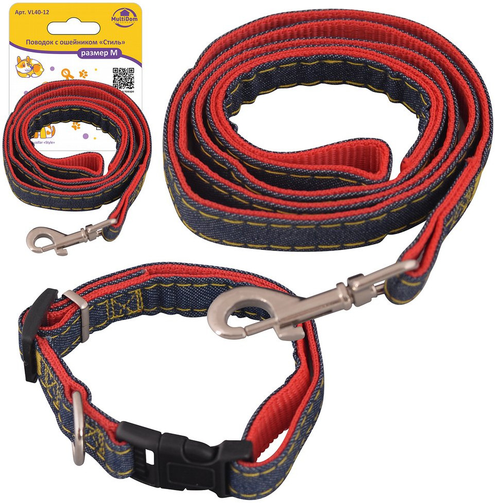 Мультидом Трейдинг Поводок с ошейником и бубенчиком «Стиль»-20% +47 закрепление мелкие породы дизайн удобство