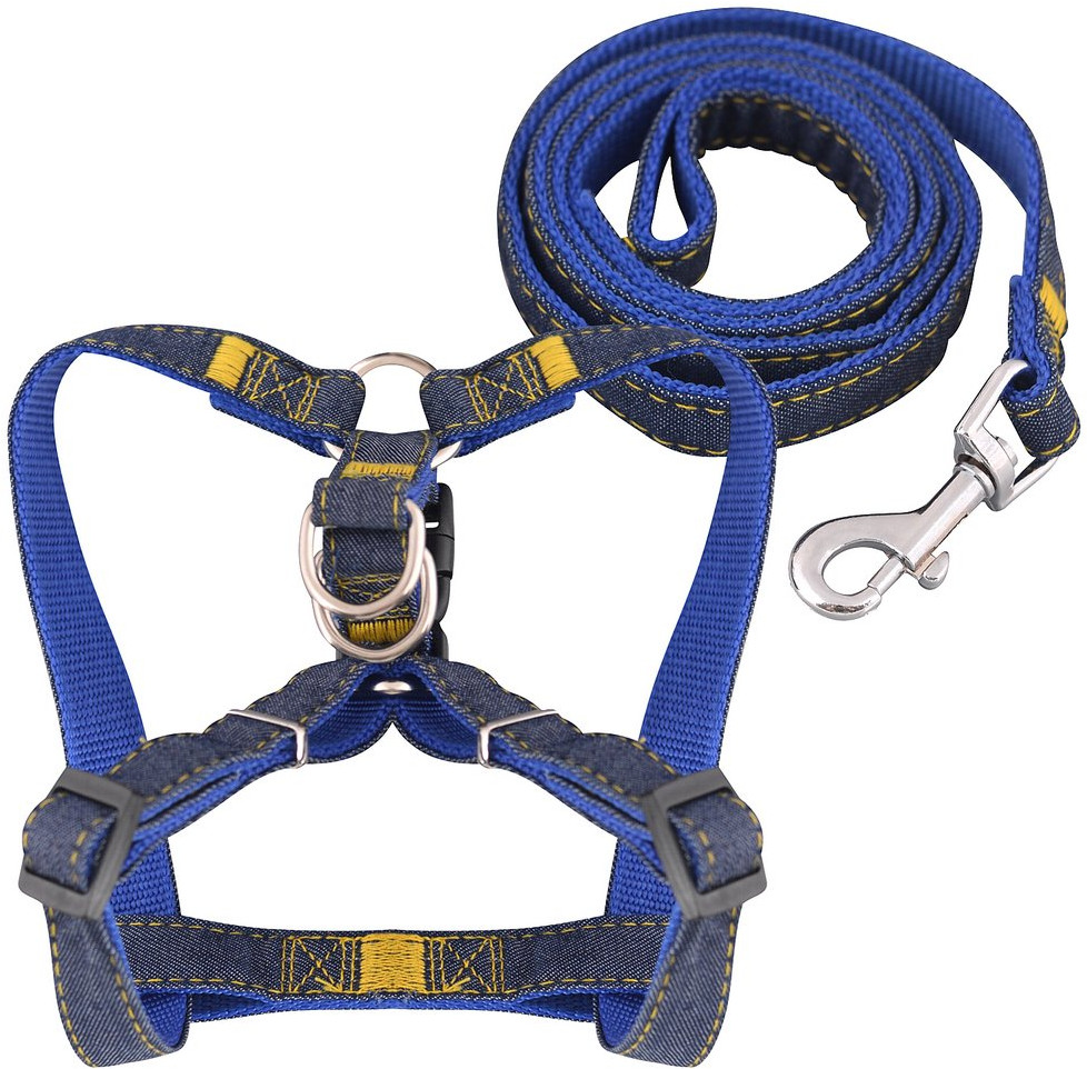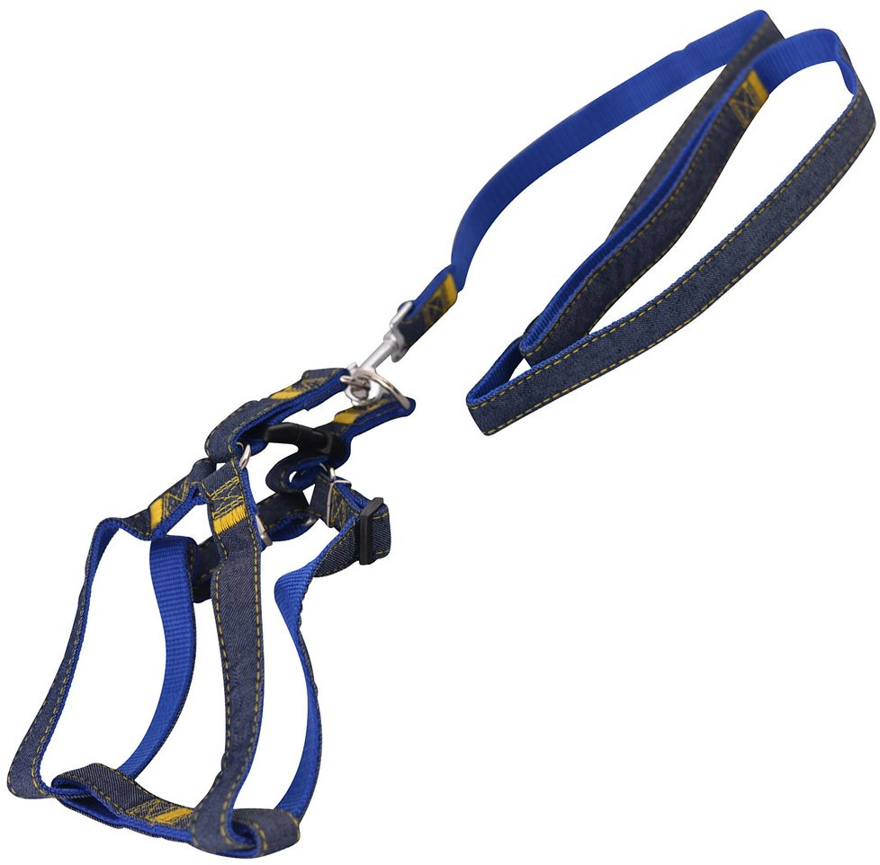 Мультидом Трейдинг Шлейка прогулочная с поводком «Джинс»-25% +126 прочный легко надевать правильный размер недорогой