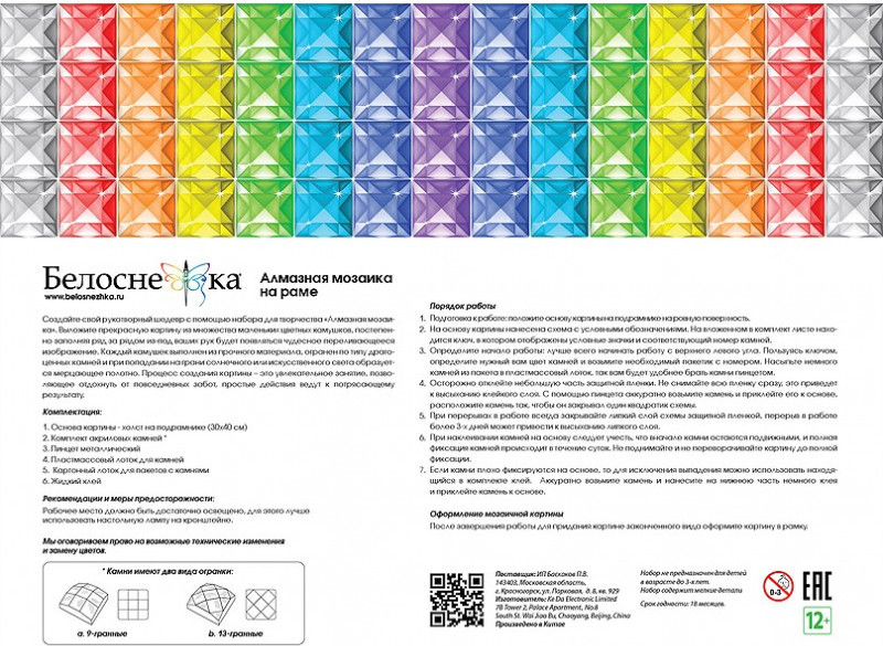 💳 Оплатить за товар можно при получении 🇰🇿 Есть бесплатная доставка по Казахстану от 1 дня 🎁 Копите бонусы с каждой покупки Увлечение алмазной мозаикой — для терпеливых людей. Наборы алмазной мозаики выкладываются квадратными многогранными камешками, сделанными из эпоксидной смолы, благодаря чему готовая картина блестит и переливается при свете. |