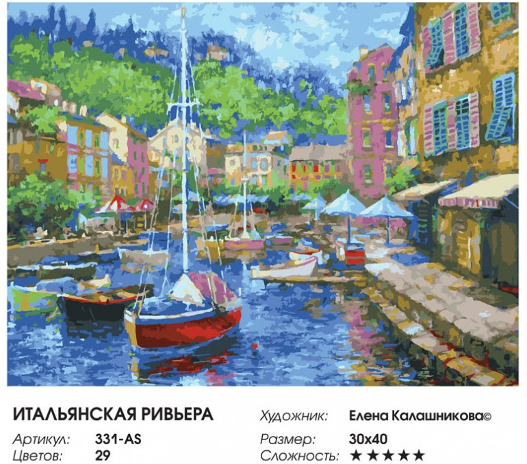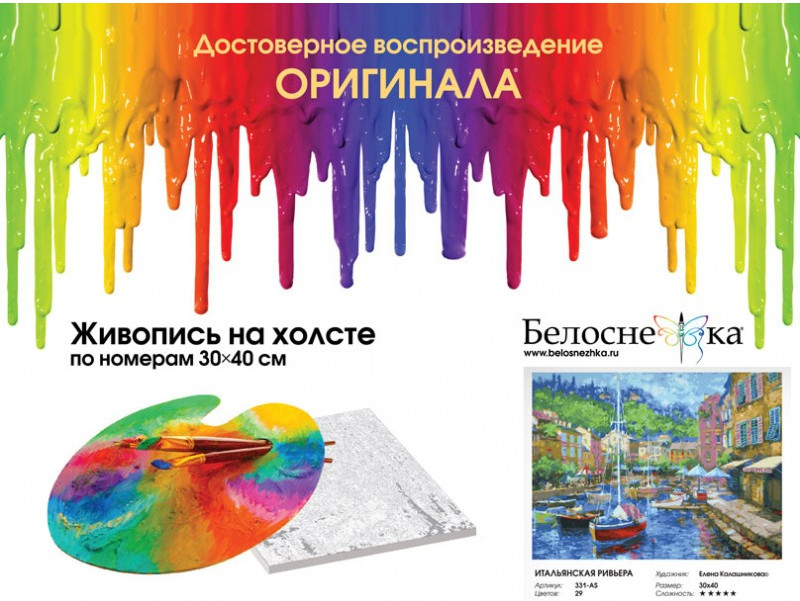 В этом наборе вы найдете холст на подрамнике, на который нанесены контуры рисунка, а также числа, указывающие на цвет, которым должна быть закрашена та или иная часть картины. Наносите краску нужного цвета на холст при помощи кисти, сверяясь с контрольной схемой. Это спокойное, неторопливое занятие подойдет и ребенку, и взрослому, к тому же оно помогает развить цветовосприятие, аккуратность и художественный вкус.