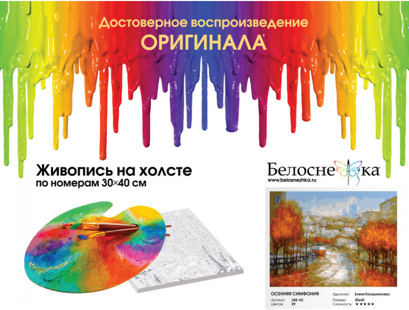 Внимание! Краски могут подсохнуть или быть слишком густыми — это не является браком, в этом случае добавьте небольшое количество воды и хорошо размешайте краску. Рекомендуем раскрашивать картину без длительных перерывов, чтобы краска в баночках не высыхала.