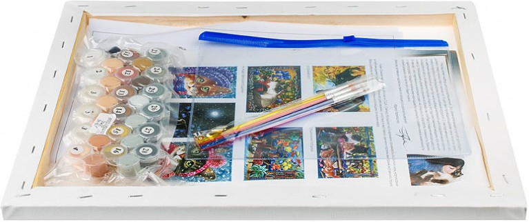 В этом наборе вы найдете холст на подрамнике, на который нанесены контуры рисунка, а также числа, указывающие на цвет, которым должна быть закрашена та или иная часть картины. Наносите краску нужного цвета на холст при помощи кисти, сверяясь с контрольной схемой. Это спокойное, неторопливое занятие подойдет и ребенку, и взрослому, к тому же оно помогает развить цветовосприятие, аккуратность и художественный вкус.