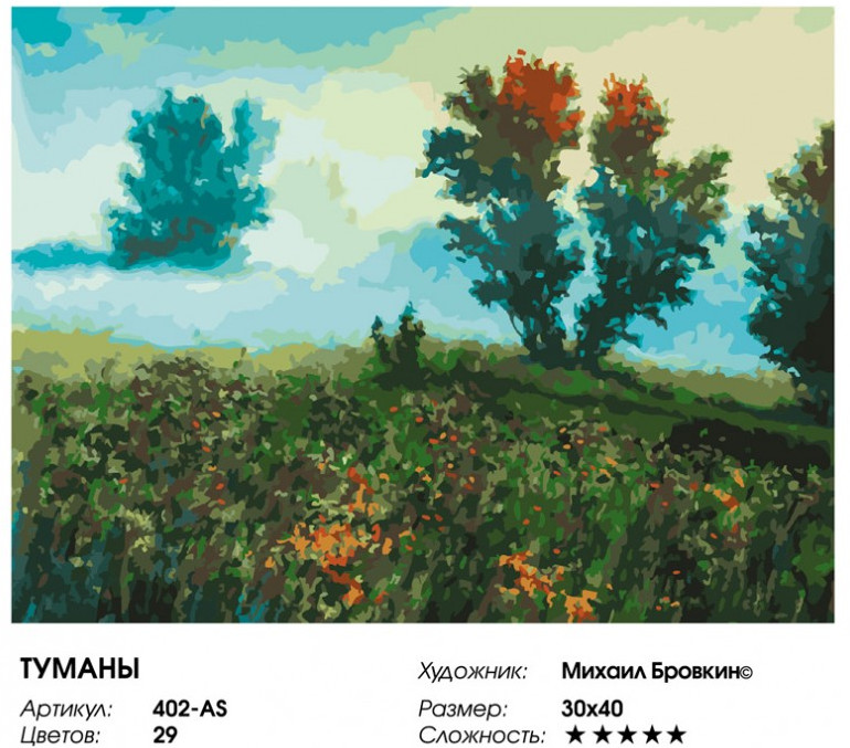 В этом наборе вы найдете холст на подрамнике, на который нанесены контуры рисунка, а также числа, указывающие на цвет, которым должна быть закрашена та или иная часть картины. Наносите краску нужного цвета на холст при помощи кисти, сверяясь с контрольной схемой. Это спокойное, неторопливое занятие подойдет и ребенку, и взрослому, к тому же оно помогает развить цветовосприятие, аккуратность и художественный вкус.