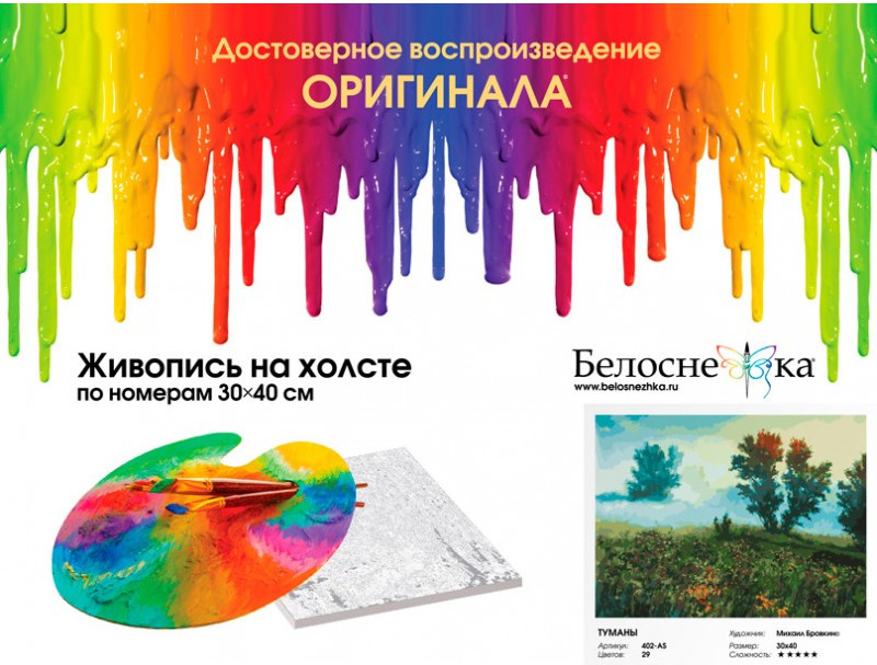 Внимание! Краски могут подсохнуть или быть слишком густыми — это не является браком, в этом случае добавьте небольшое количество воды и хорошо размешайте краску. Рекомендуем раскрашивать картину без длительных перерывов, чтобы краска в баночках не высыхала.