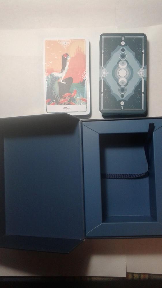 Хорошего качества картон, р-р7×12, есть книга компаньон (русскоязычная), хороший подарочный вариант. Рекомендую.