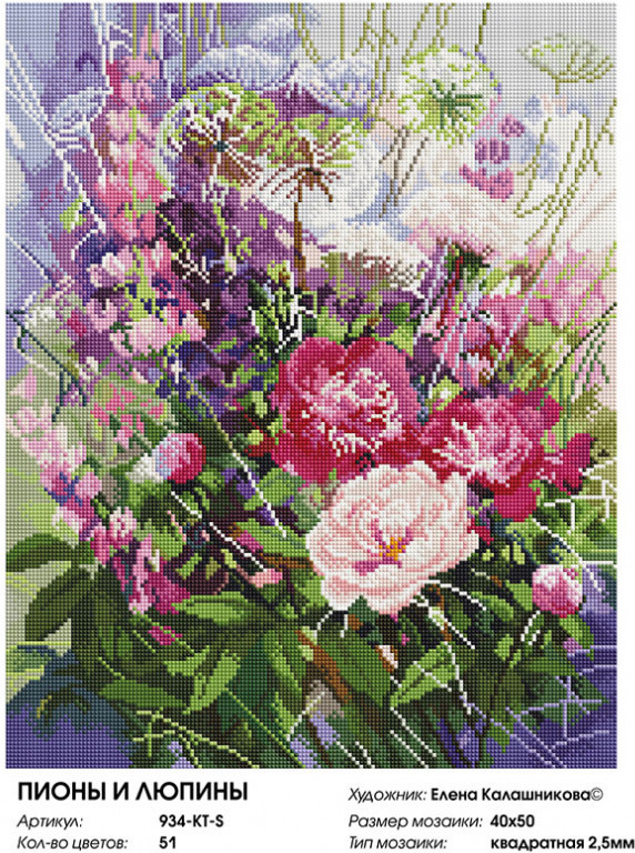Белоснежка Мозаика алмазная «Пионы и люпины»-25% +144