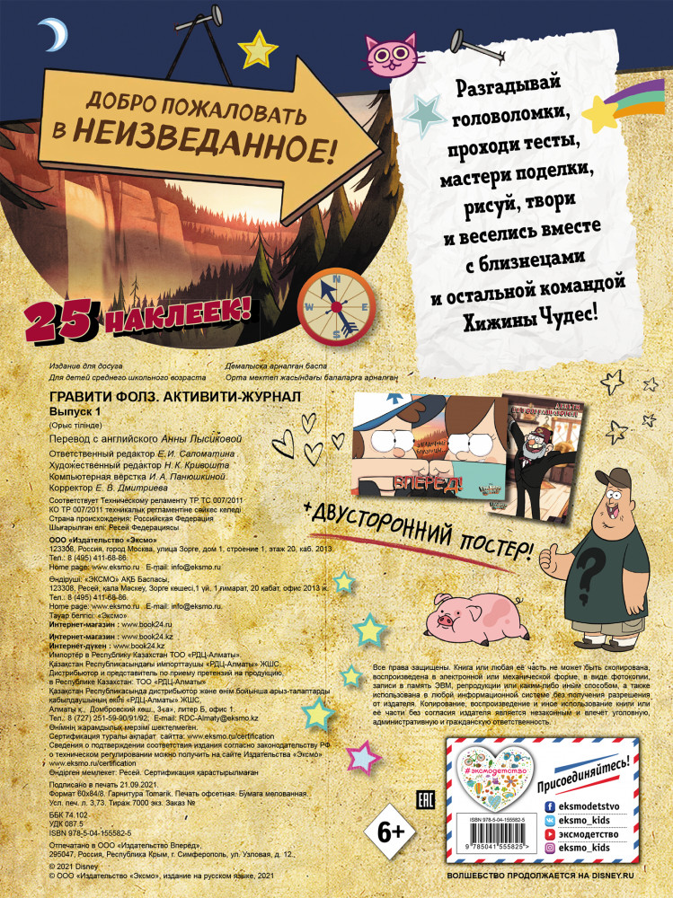 Гравити Фолз. Активити-журнал. Выпуск 1В данный момент этот товар отсутствует в продаже. Возможно, у нас найдется аналогичный или похожий товар здесь. Серия: Disney. Гравити Фолз. Фан-книги Добро пожаловать в Гравити Фолз на встречу с близнецами Пайнс и другими героями любимого сериала! На страницах этой книги скуке нет места: тебя ожидают головоломки, задачки, раскраски, поделки, двусторонний постер и 25 наклеек! |