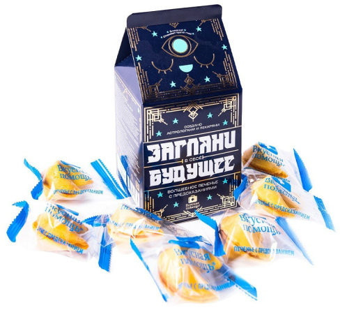 Вкусная помощь Печенье с предсказаниями «Загляни в свое будущее»В данный момент этот товар отсутствует в продаже. Возможно, у нас найдется аналогичный или похожий товар здесь. Внутри Вы найдёте семь печений с предсказаниями. Украсьте любую вечеринку приятными мелочами. Предсказания и пожелания в печеньях мотивируют и воодушевляют, ждать их исполнения — весьма сладостное и вкусное занятие. Приятно делать неожиданные сюрпризы! |