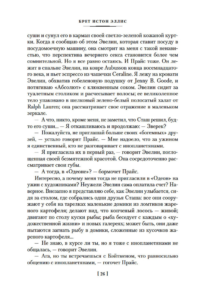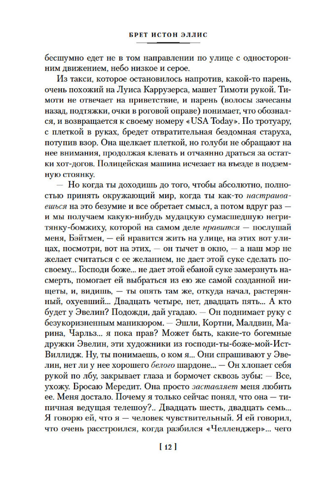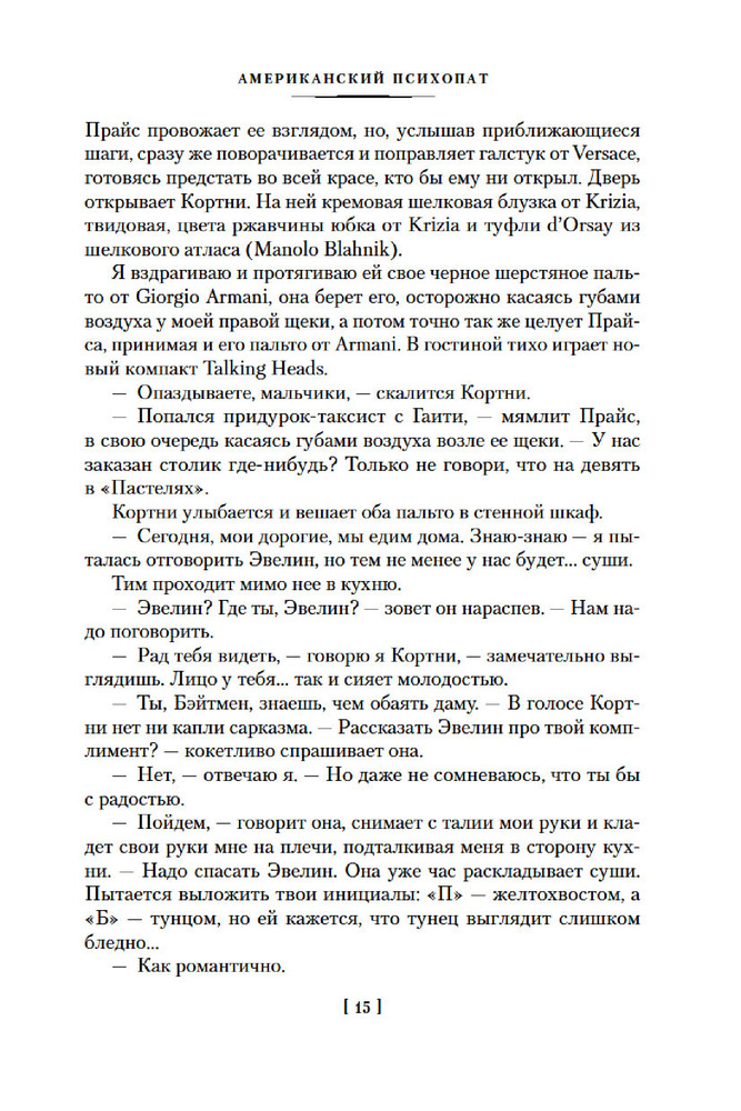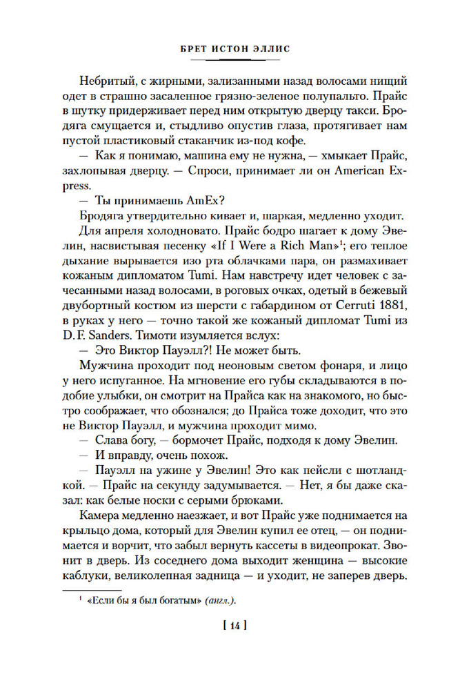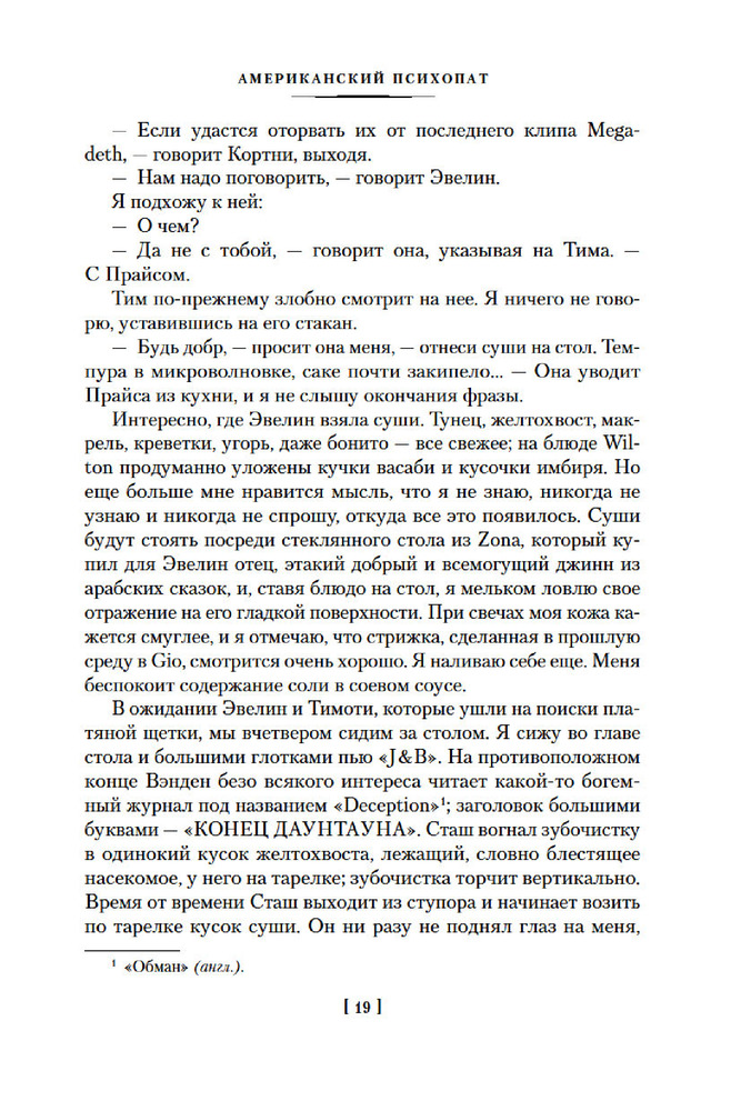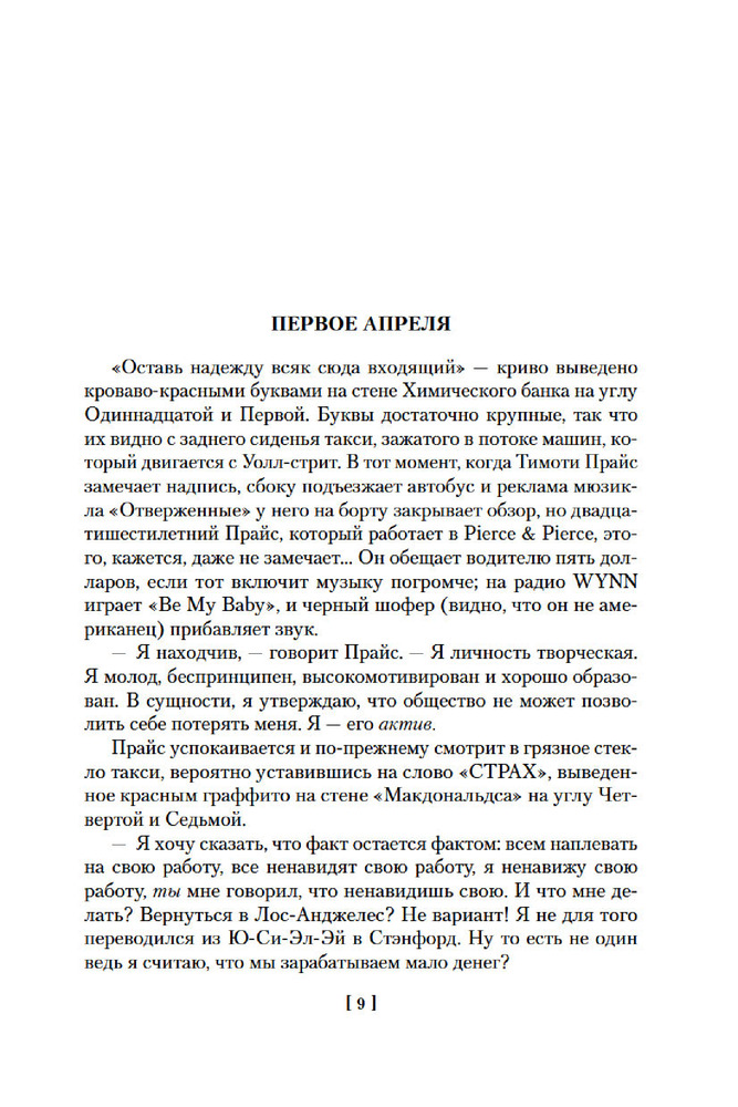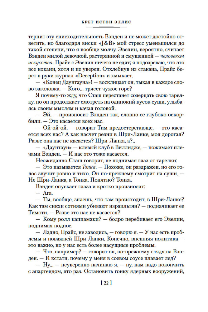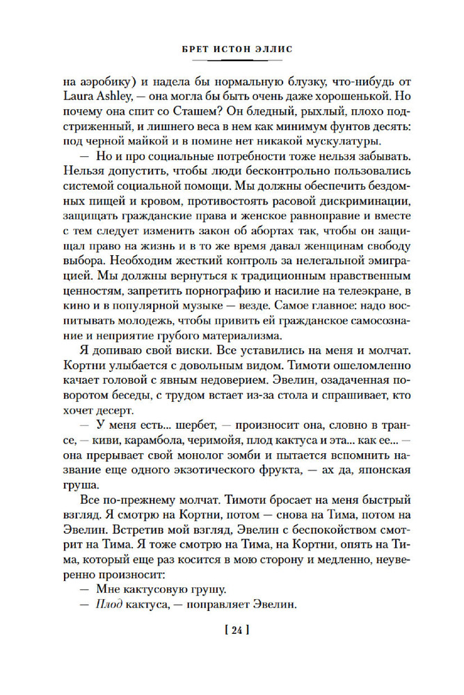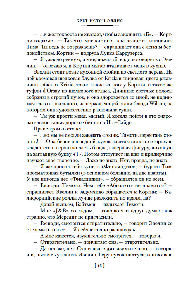 💳 Оплатить за товар можно при получении 🇰🇿 Есть бесплатная доставка по Казахстану от 1 дня 🎁 Копите бонусы с каждой покупки Серия: Иностранная литература. Большие книги Патрик Бэйтмен — красивый, хорошо образованный, интеллигентный молодой человек. Днем он работает на Уолл-стрит, но это служит лишь довеском к его истинному призванию. То, чем он занимается вечерами и по ночам, не может присниться разнеженному обывателю и в самом страшном сне. Ему двадцать шесть лет, и он живет своей собственной Американской Мечтой. |