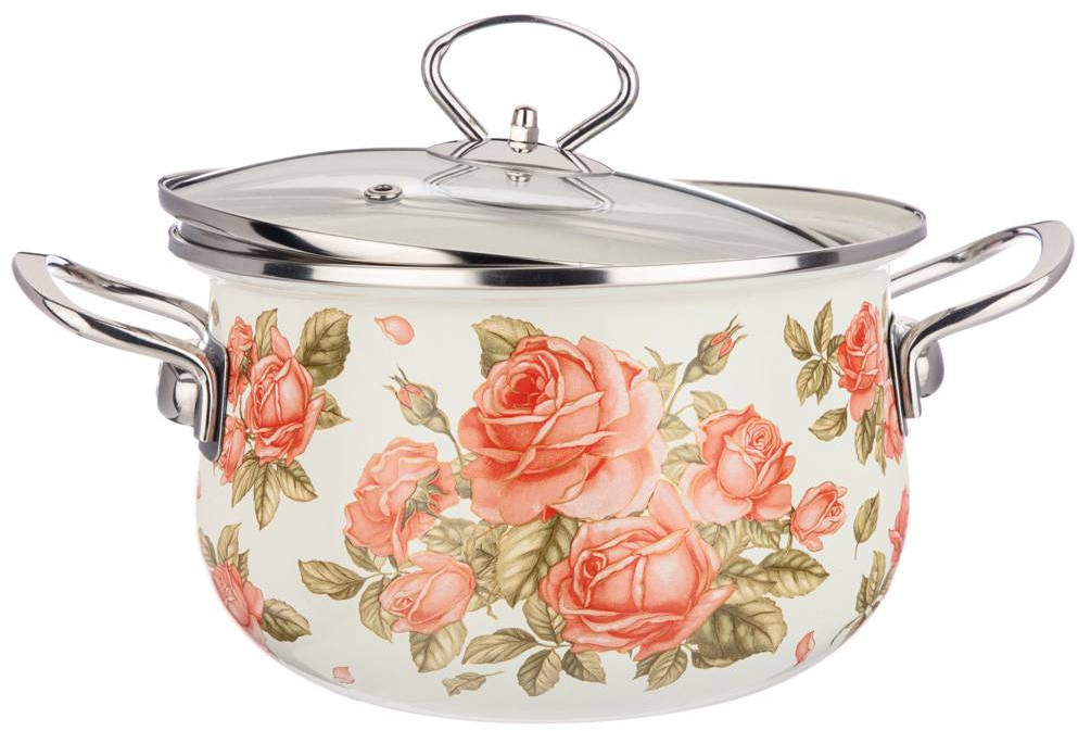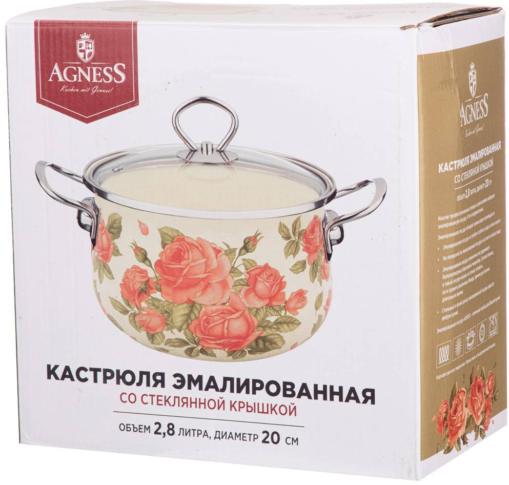 Agness Кастрюля эмалированная со стеклянной крышкой