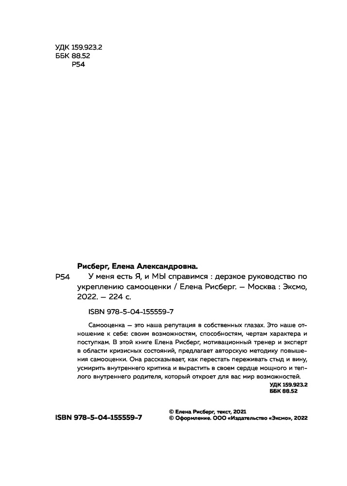💳 Оплатить за товар можно при получении 🇰🇿 Есть бесплатная доставка по Казахстану 🎁 Копите бонусы с каждой покупки Серия: Искусство самопринятия Часто переживаете стыд и вину? Болезненно воспринимаете критику в свой адрес? А Ваше настроение сильно зависит от того, что подумают окружающие? Пора перестать себя оценивать и начать ценить. Елена Рисберг, мотивационный тренер и эксперт в области кризисных состояний, предлагает авторскую методику повышения самооценки. Опираясь на кейсы, задания и практики из книги, Вы шаг за шагом пройдете по пути нового диалога с собой. А еще: перестанете страдать из-за внешней оценки и одобрения, выйдете из зависимых отношений, сбросите оковы долга и обязательства, смените требовательный и критичный подход к себе на бережный и заботливый. |