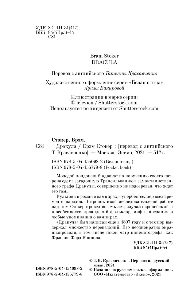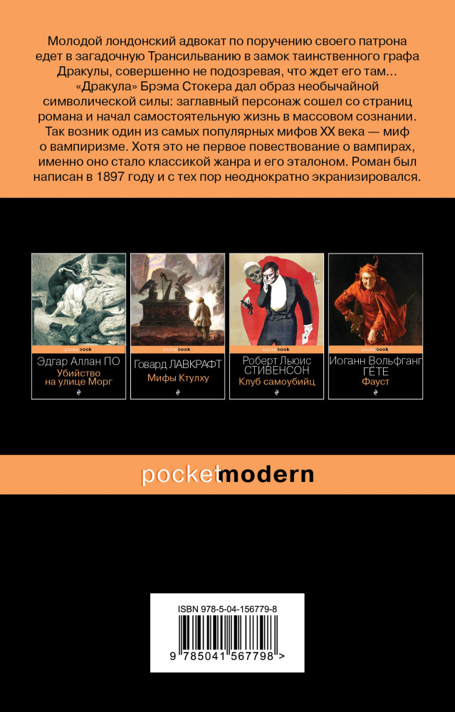 В данный момент этот товар отсутствует в продаже. Возможно, у нас найдется аналогичный или похожий товар здесь. Серия: Pocket Book (обложка) Молодой лондонский адвокат по поручению своего патрона едет в загадочную Трансильванию в замок таинственного графа Дракулы, совершенно не подозревая, что ждет его там.