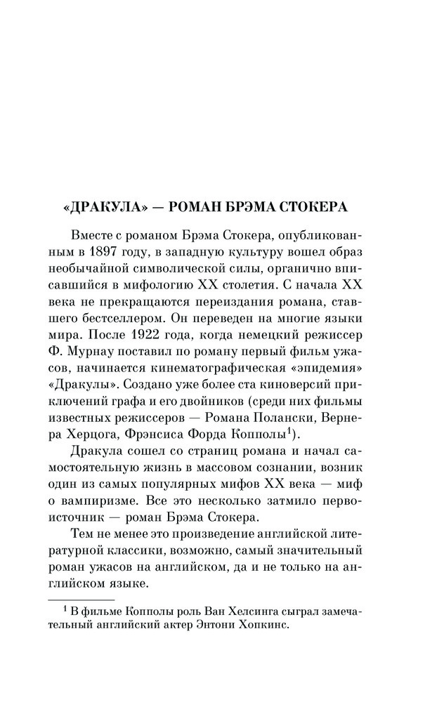 "Дракула" был написан еще в 1897 году и с тех пор выдержал множество переизданий. Его неоднократно экранизировали, в том числе такой мэтр кинематографа, как Фрэнсис Форд Коппола. |