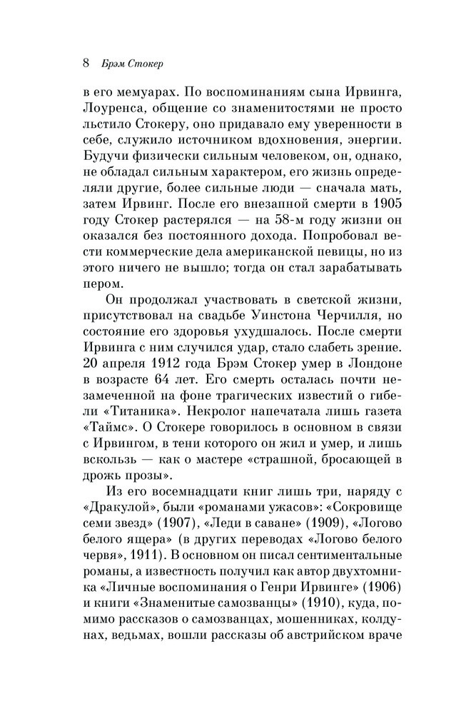 Культовый роман о вампирах, супербестселлер всех времен и народов. В кропотливой исследовательской работе над ним Стокер провел восемь лет, изучал европейский и в особенности ирландский фольклор, мифы, предания и любые упоминания о вампирах и кровососах.