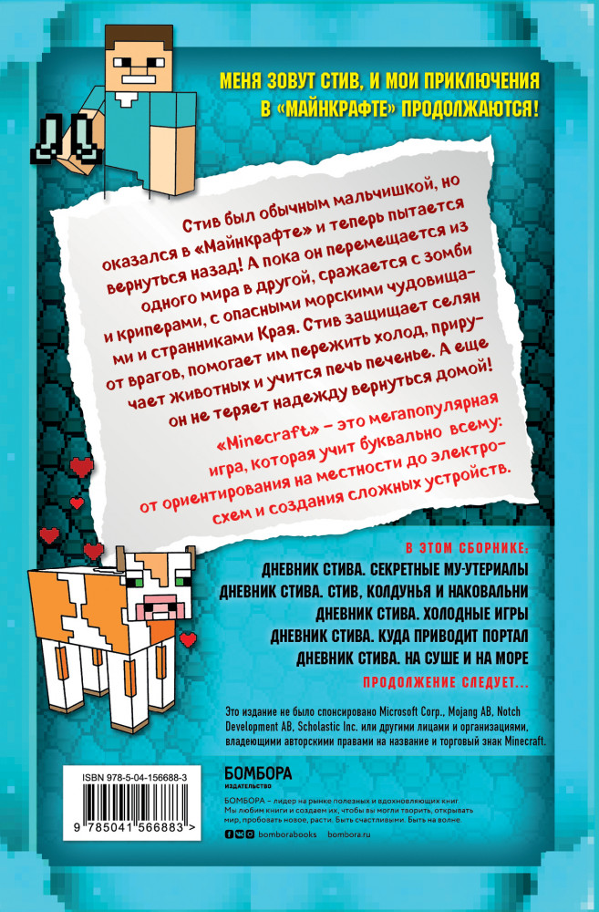💳 Оплатить за товар можно при получении 🇰🇿 Есть бесплатная доставка по Казахстану от 1 дня 🎁 Копите бонусы с каждой покупки Серия: Майнкрафт. Дневник Стива Раньше Стив не мог даже представить, что с ним такое случится! Он в самом деле застрял в «Майнкрафте» и совершенно не понимает, как ему отыскать дорогу домой! Но это не повод для грусти, ведь теперь он перемещается между мирами и у него уйма дел. На каждом шагу Стива подстерегают опасности — криперы, зомби, жуткие морские чудовища и другие монстры. Стиву предстоит проявить доблесть, если он хочет стать настоящим героем и защитить селян! |