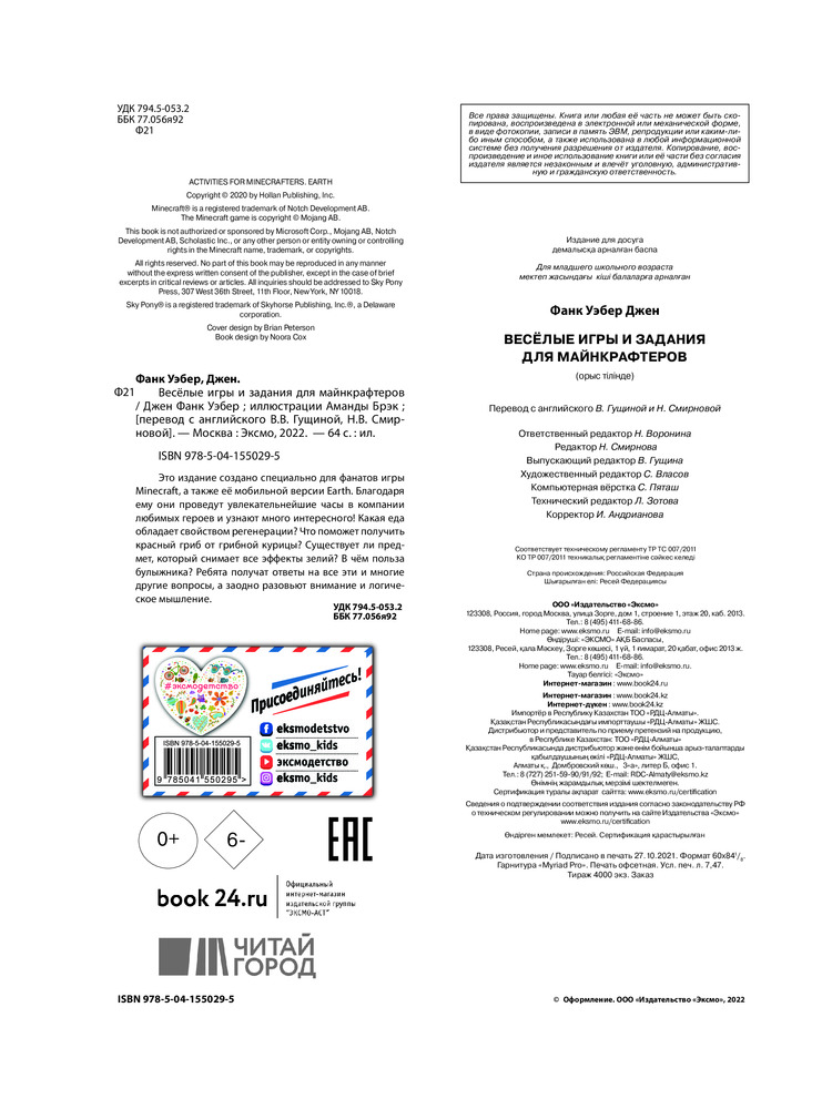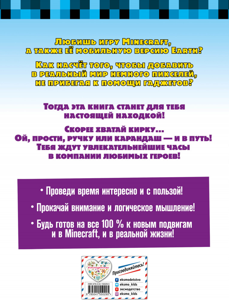 Смотришь на мир вокруг и... хочешь дополнить его персонажами из Minecraft? По достоинству оценил мобильную версию игры Earth? Тогда эта книга — то, что тебе нужно! Пройди совершенно невообразимые головоломки и лабиринты, разгадай невероятнейшие шифры и кроссворды, прокачай внимание и память! И всё это — в компании давно полюбившихся героев!