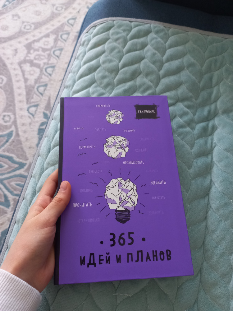 Шикарный ежедневник за свою цену! Обложка не твердая, но плотная. Есть разные разделы. Этот ежедневник, действительно, для идей, планов, выработки привычек, и заметок. Единственное - в разделе "что почитать" написано "фильмы". Однозначно рекомендую к покупке.