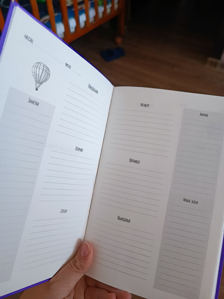 ежедневник тоньше, чем кажется на фотографиях товара. большинство страниц состоят из шаблонов для планирования. есть страницы с разными списками :) страницы очень приятные на ощупь. переплёт прочный (нитью) 👍