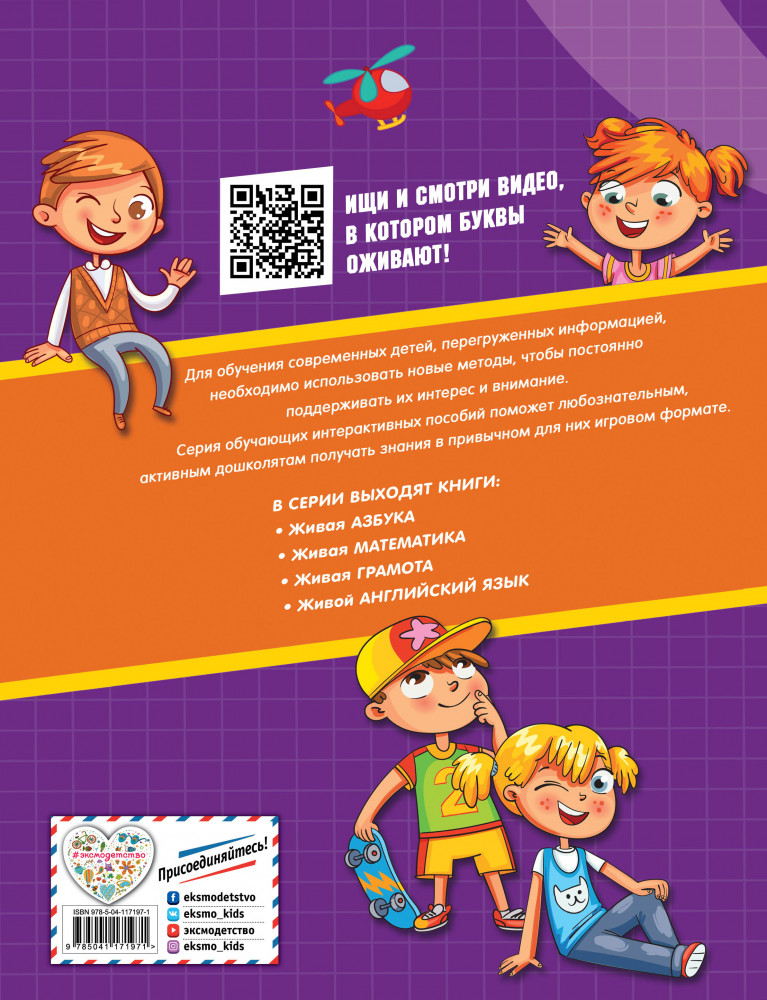 Живая азбукаВ данный момент этот товар отсутствует в продаже. Возможно, у нас найдется аналогичный или похожий товар здесь. Серия: Живая азбука Основная цель пособия — познакомить ребёнка со звуками и буквами русского алфавита в интересной игровой форме. Увлекательные задания, весёлые стихотворения, яркие иллюстрации, обучающие анимационные видео помогут малышу сформировать зрительный образ буквы, понять связь между звуком и буквой, научиться определять место буквы в слове, соотносить букву и название предмета, развить графические навыки и речь, память и внимание, мышление и воображение. Будет полезно любознательным активным дошколятам, их родителям, воспитателям ДОУ. |