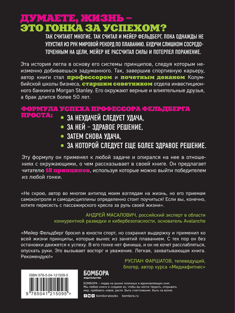 Жизнь после цели, Или как достигнуть успеха, вкладываясь в действия, а не в результатВ данный момент этот товар отсутствует в продаже. Возможно, у нас найдется аналогичный или похожий товар здесь. Серия: Психология. Искусство лидера Думаете жизнь — это гонка за успехом? Так считают многие. Так считал и Мейер Фельдберг, пока однажды не упустил из рук мировой рекорд по плаванью. Будучи слишком сосредоточенным на цели, Мейер не рассчитал силы и потерпел поражение. |