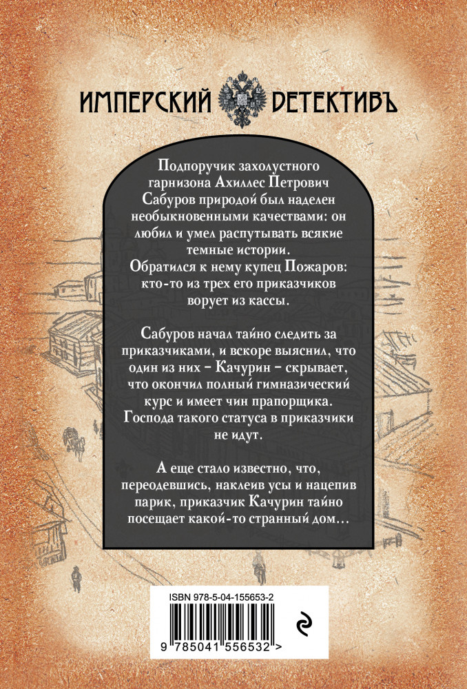 Изобличитель. Кровь, золото, собакаАлександр Александрович Бушков В данный момент этот товар отсутствует в продаже. Возможно, у нас найдется аналогичный или похожий товар здесь. Серия: Бушков. Имперский детективъ (обложка) Пожалуй, это самый яркий, насыщенный, атмосферный ретро-детектив Александра Бушкова. Полное погружение в «золотой век» Российской империи, когда молодые пары знакомились на балах в Дворянском собрании, офицерам императорской армии прислуживали денщики, а за порядком в провинциальных городишках следили частные приставы. Но преступники, как дикие звери, были люты, изворотливы и очень хитры. Купец Пожаров обратился за помощью к подпоручику Сабурову, чтобы разобраться, кто из трех его приказчиков ворует из кассы. Взяв в помощники своего денщика Артамошку, Сабуров начал тайно следить за приказчиками, и вскоре выяснил, что один из них — Качурин — вовсе не тот, за кого себя выдает. Оказалось, этот тип скрывает, что окончил полный гимназический курс и имеет чин прапорщика. Господа с таким образованием и чином в приказчики не идут. А еще стало известно, что, переодевшись, наклеив усы и нацепив парик, приказчик Качурин тайно посещает какой-то странный дом... |
