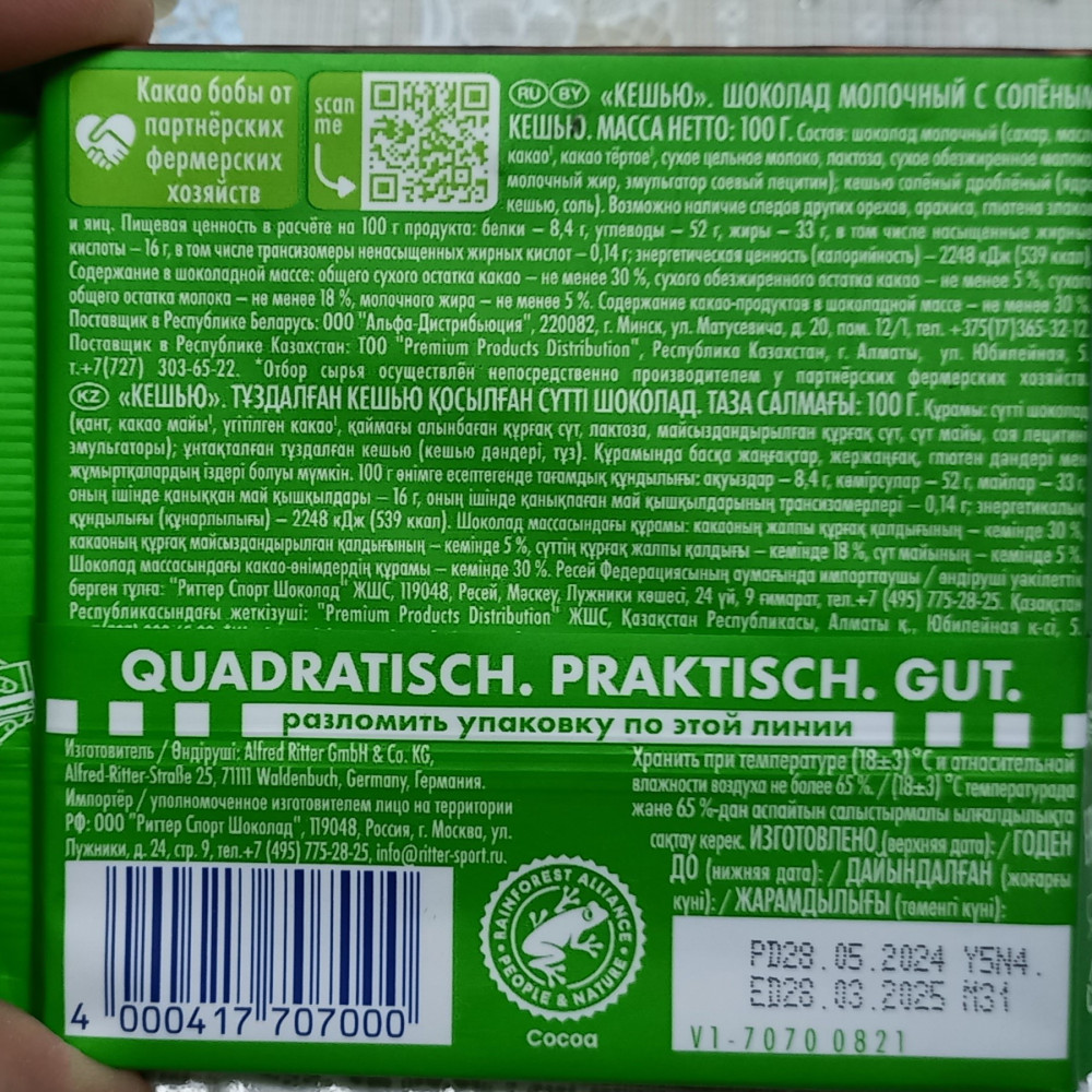 Брала на подарок. Срок годности почти до конца 2024г. Только сейчас увидела что орехи соленые. Спасибо